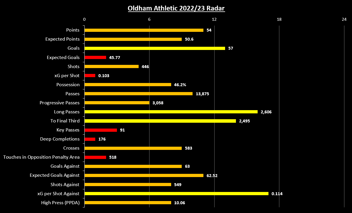 Oldham have taken 54 points from their 43 matches so far this season, ever so slightly more than their expected points figure of 50.6.