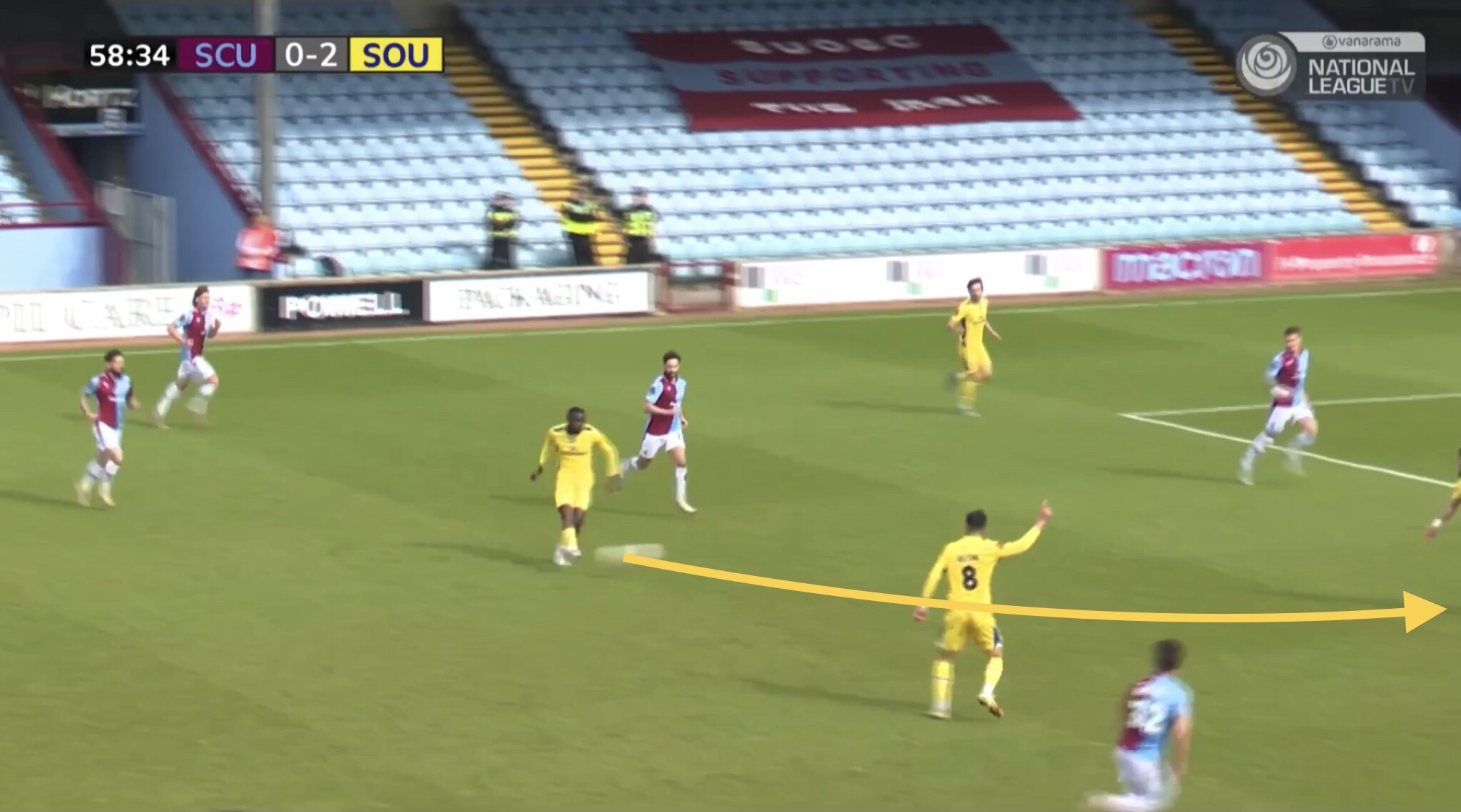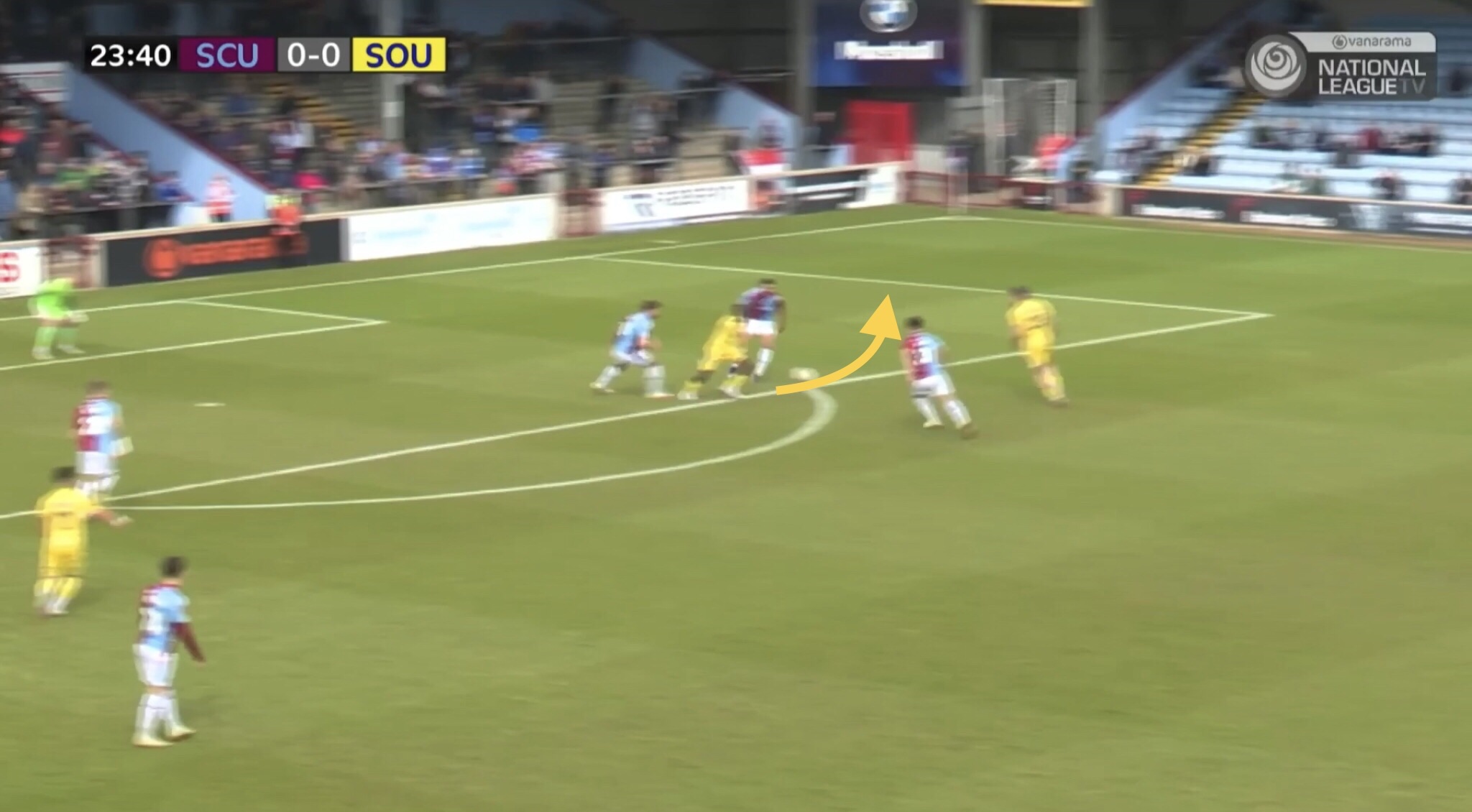 Scunthorpe’s right back comes across to cover this space, which in turn creates a bit of space for Bridge. Husin passes the ball out to Bridge who crosses into a dangerous area, but his cross is cleared.