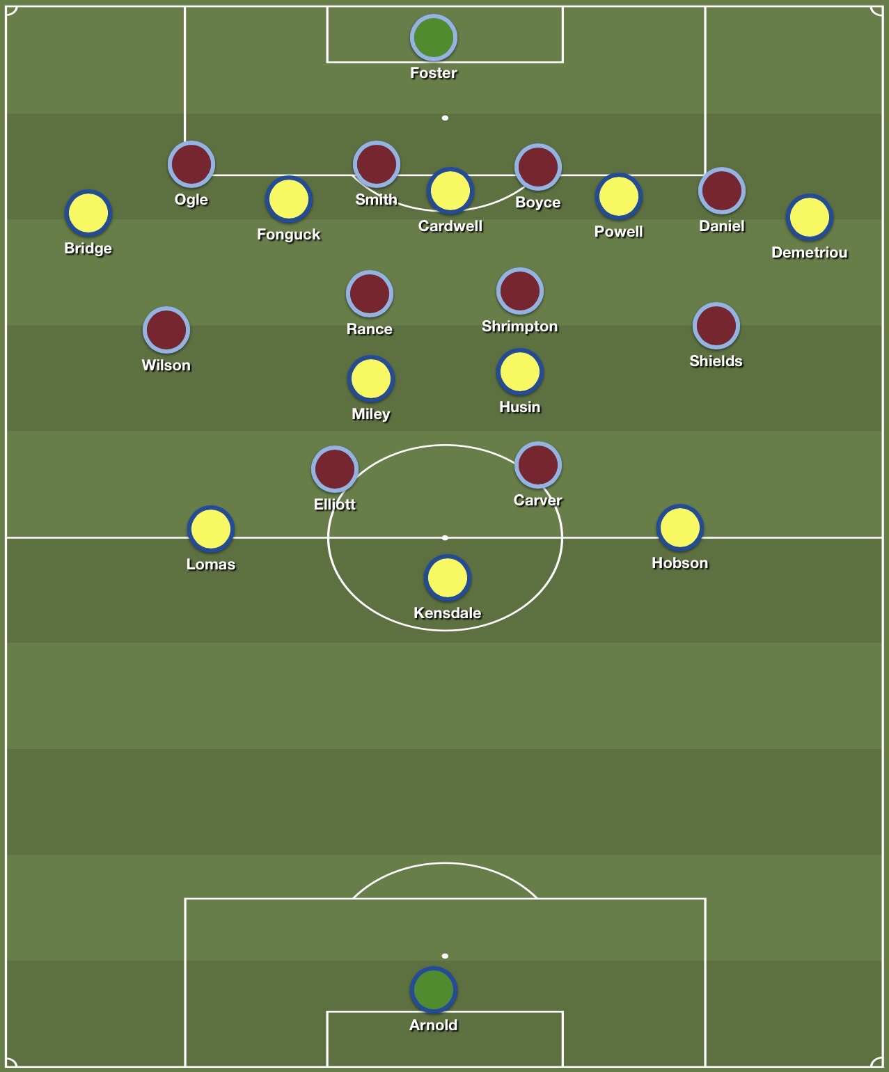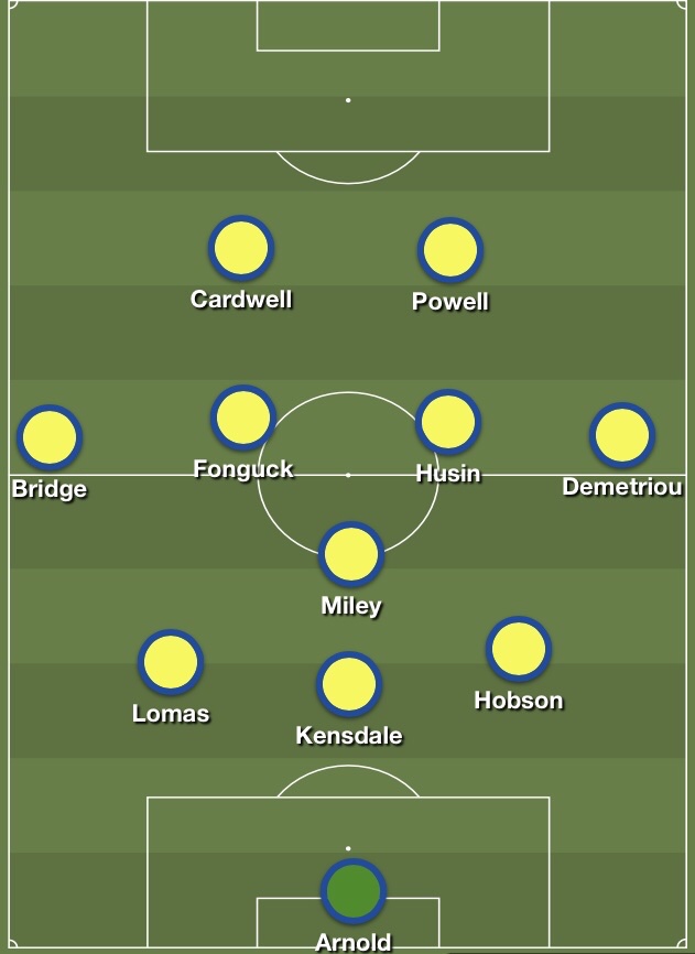 Southend went with our usual 3-5-2 formation. Steve Arnold played in goal, behind a back three of Hobson, Ollie Kensdale and Louis Lomas. Cav Miley sat at the base of the midfield with Husin and Fonguck ahead of him. Jason Demetriou and Jack Bridge were the wing backs, and Callum Powell partnered Harry Cardwell in attack.