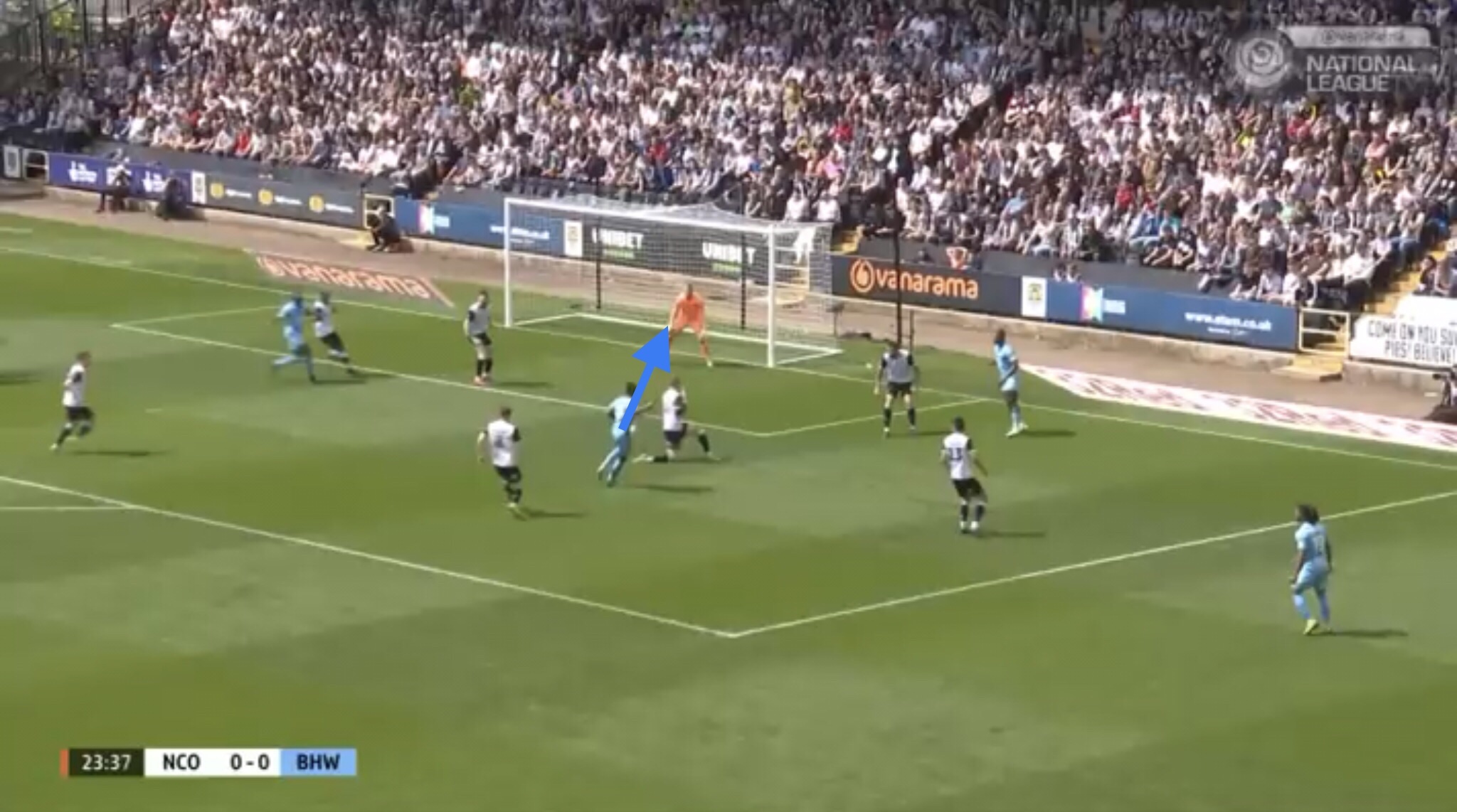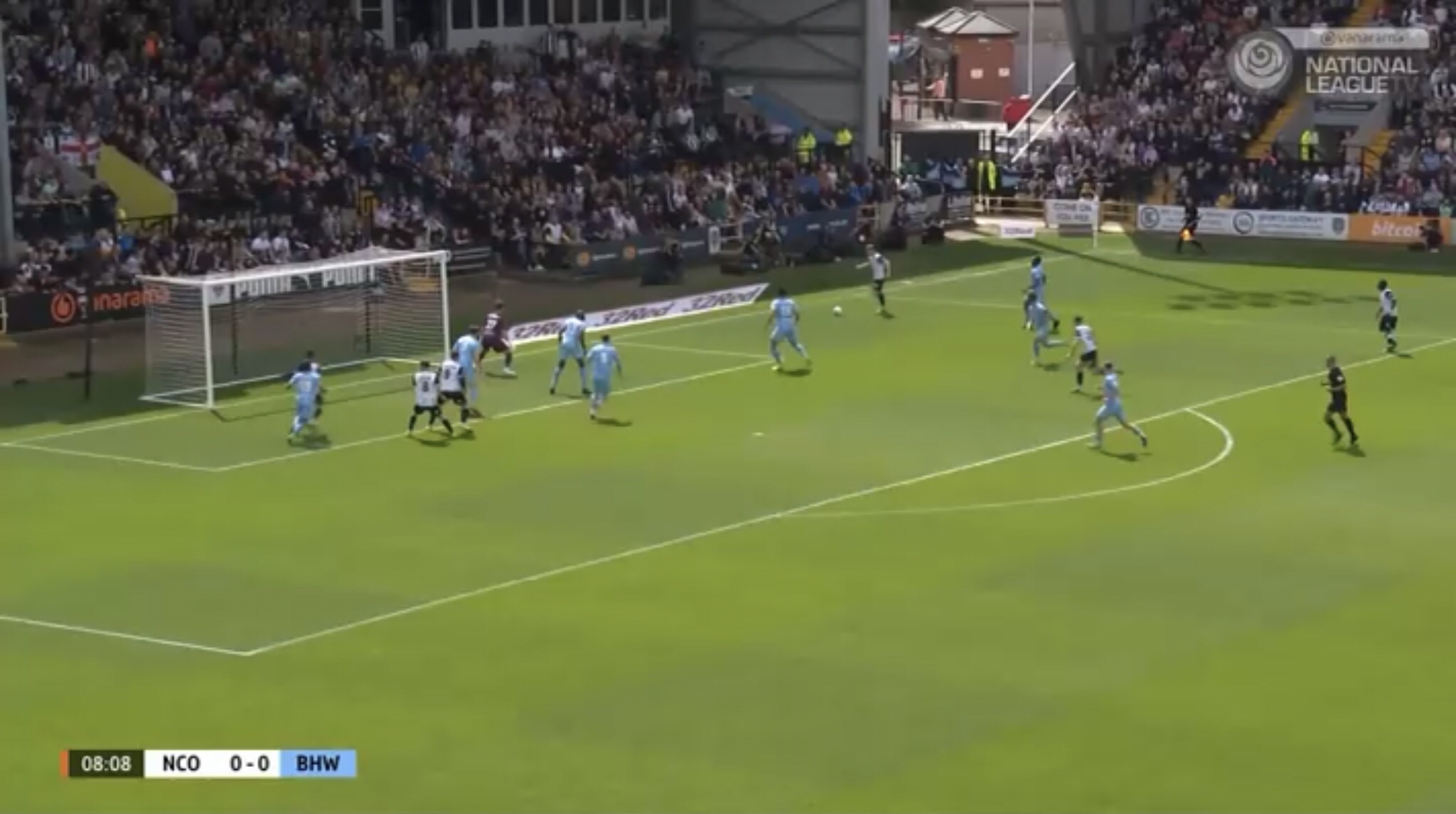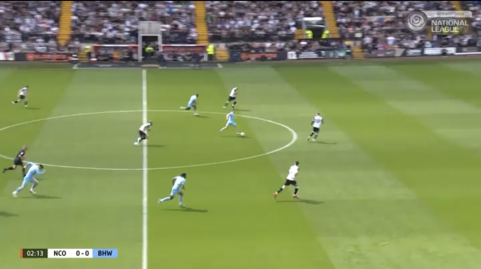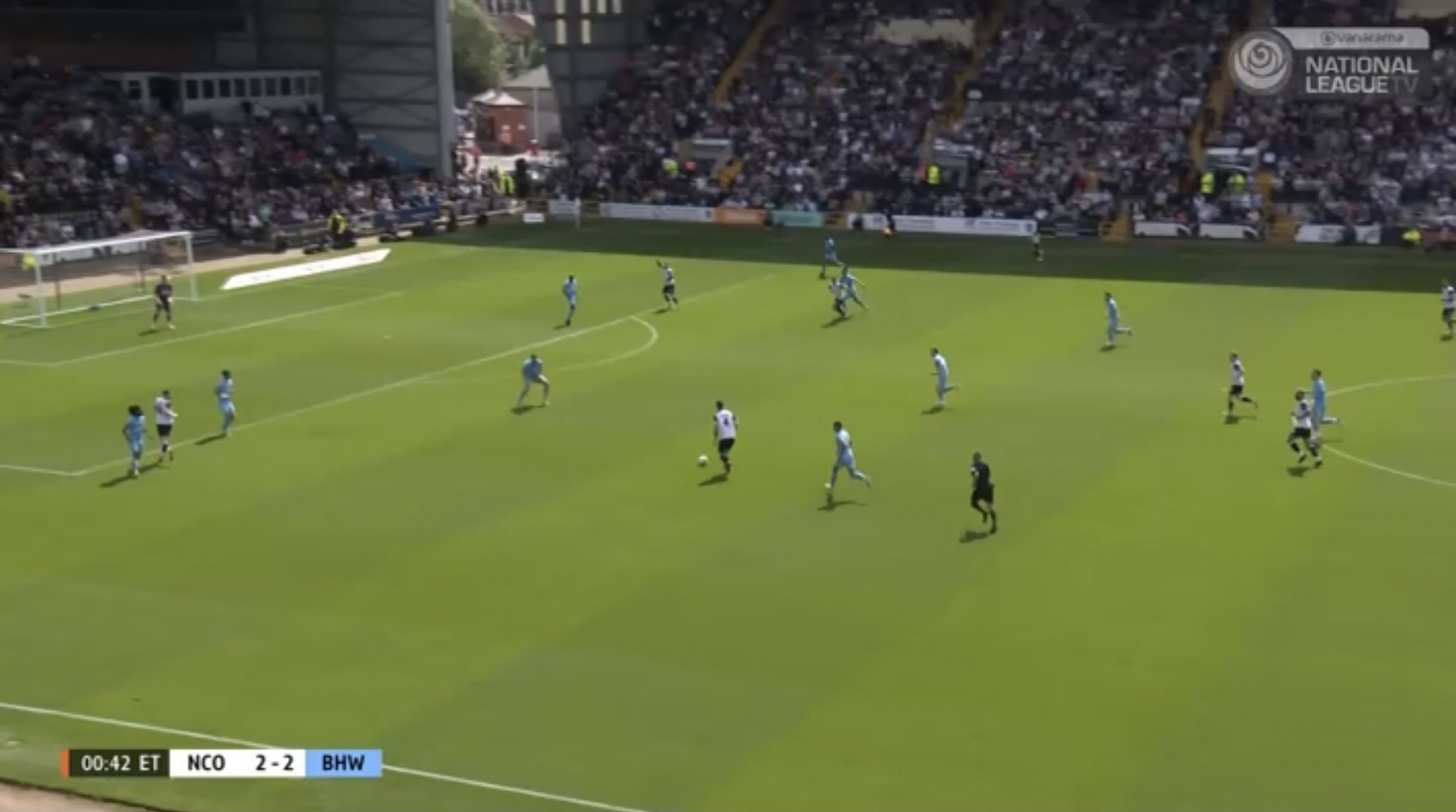 Hereâs an example, with Boreham Wood switching the play diagonally towards a striker. They managed to win a free kick on this occasion, presenting them with an opportunity to get the ball into the Notts penalty area.