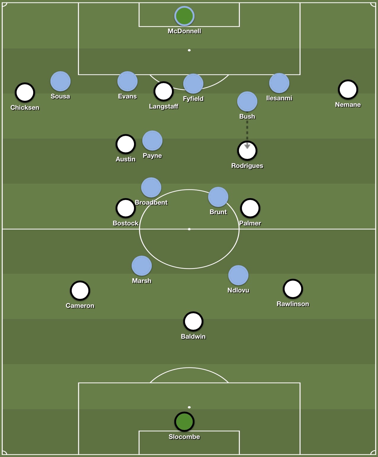 Hereâs an example. Here, you can see Nottsâ central midfielders Palmer and Bostock positioned in front of each other, rather than side by side.