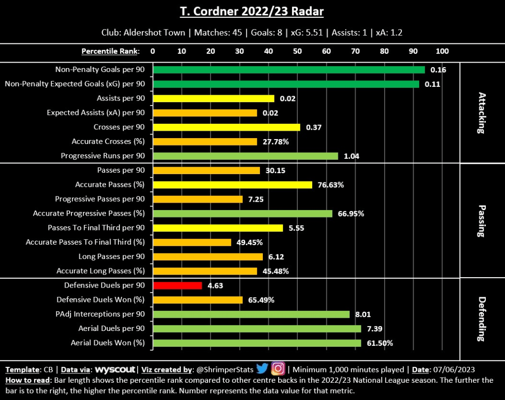 Tyler Cordner will turn 25-years-old in December and fits the profile of being a physical defender who can play in the middle of the back three. Cordner is under contract at Aldershot Town so would require a transfer fee, and realistically will have offers from League Two this summer. He’s also a threat from set-pieces, and even if he were to join us it would be on the assumption that he would be first choice, so it would only happen if Kensdale were to leave.