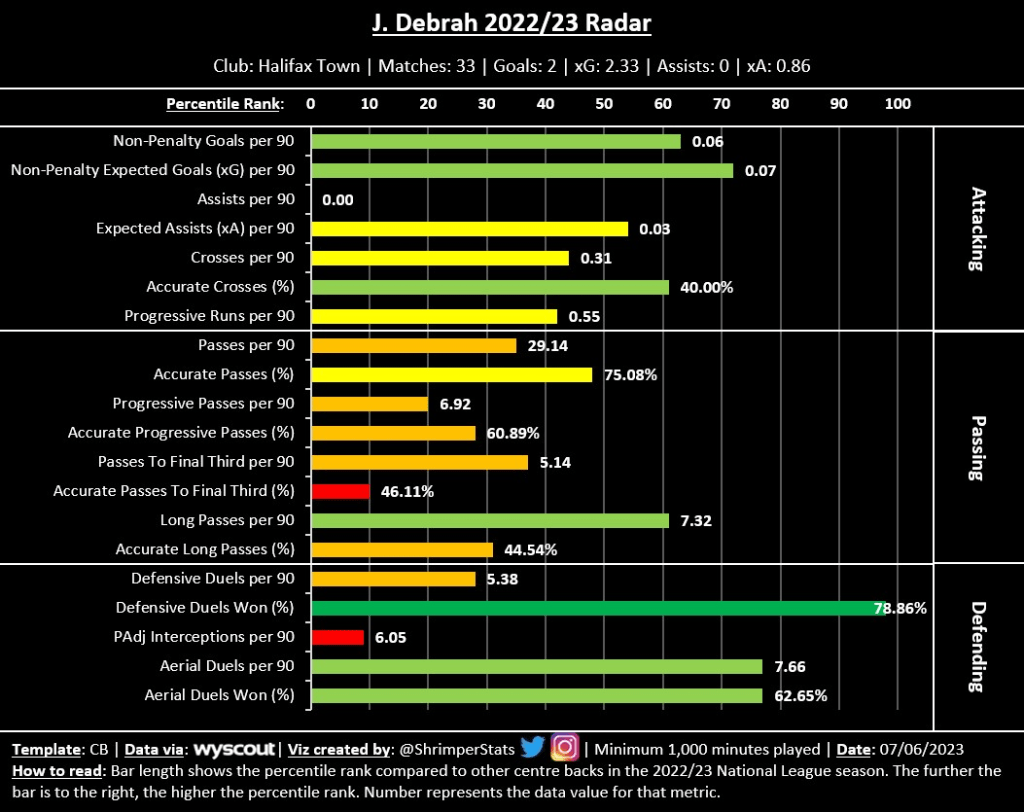 Jesse Debrah turned 22-years-old in May and is out of contract at Halifax Town this summer. A similar profile to Cordner, Debrah is a physical player who can also play. At such a young age he has lots of potential and again will likely have offers from higher up the pyramid, considering he’s available on a free transfer this summer. I think Debrah could also play on the right side of our back three if we were to make this one happen.