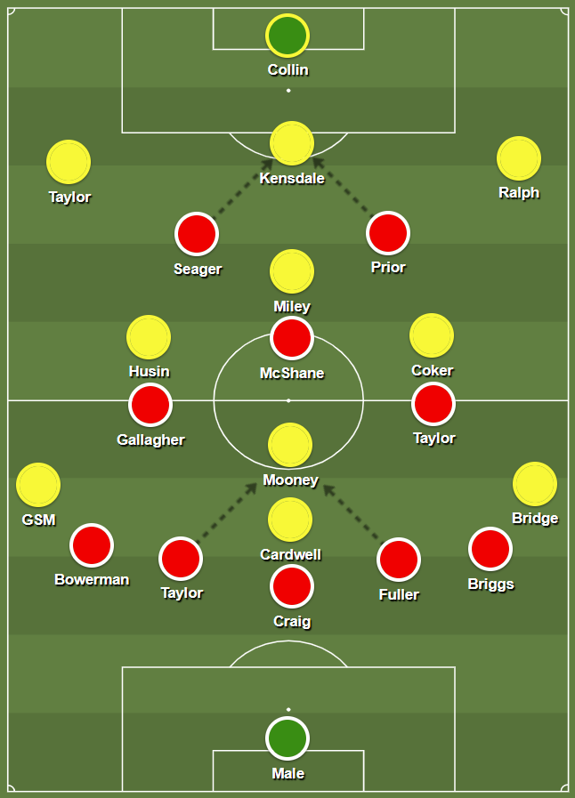 However I also feel that Dorking’s half-time substitution made a difference. Dorking took off Taylor and moved midfielder Dan Gallagher to the left-sided centre back role. Midfielder Aaron Kuhl came on in Taylor’s place. This meant that it was now Gallagher’s responsibility to man-mark Mooney, rather than Fuller or Taylor. Being a natural midfield player, Gallagher possesses both the physical and tactical attributes to deal with Mooney more effectively than Fuller or Taylor could. He’s mobile enough to be able to jump into midfield quickly, and as he’s used to playing centrally, he can win duels in the middle of the pitch effectively. Mooney won six of his 12 offensive duels in the first half, compared to just one out of four in the second.