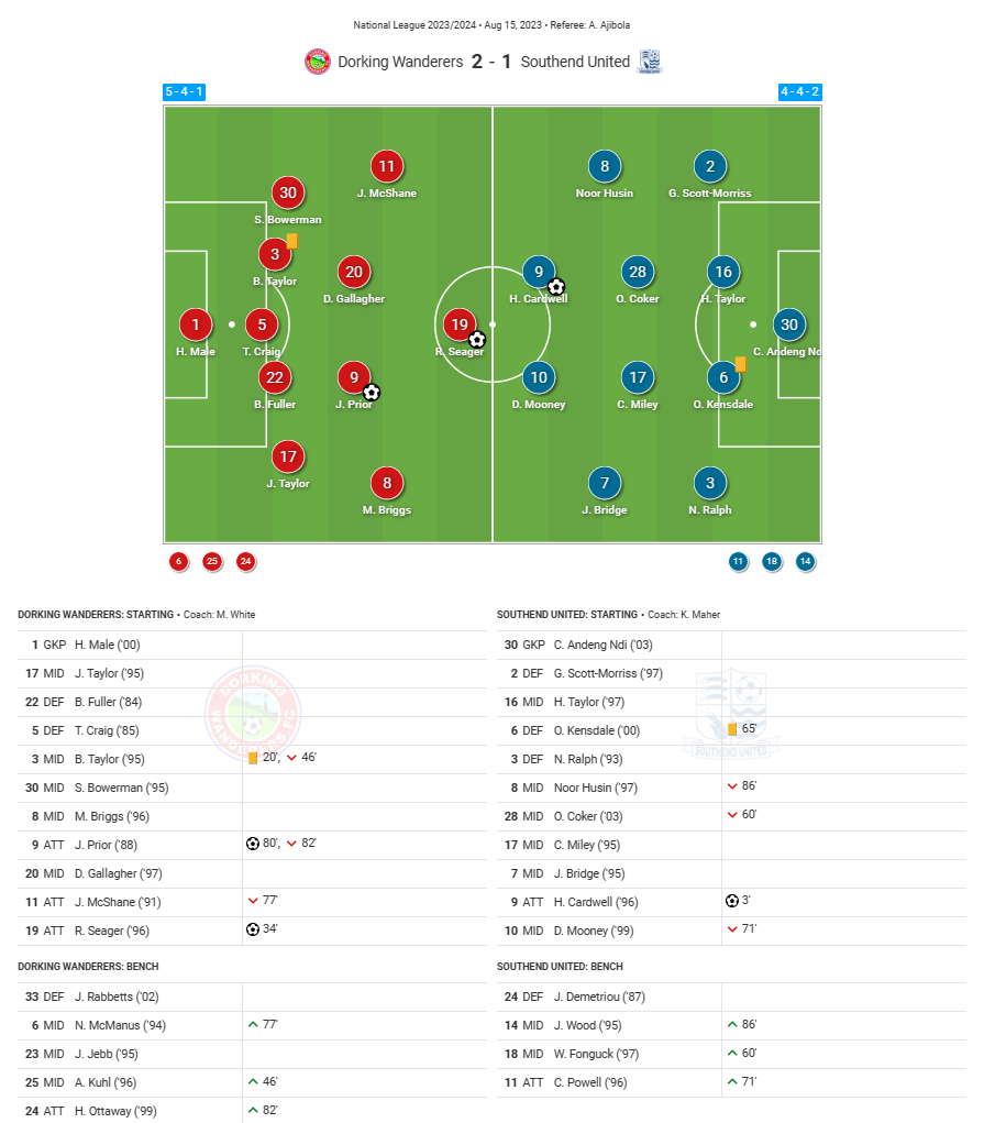 Southend United suffered their first defeat of the 2023/24 National League season on Tuesday night away to Dorking Wanderers.