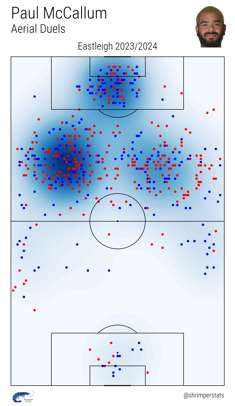 By analysing McCallum’s player radar chart (below), we can see that he doesn’t really excel at much other than aerially, and in-front of goal.