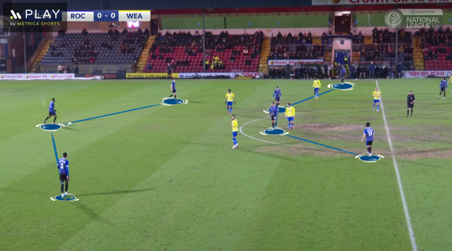McNulty’s high press will work against the majority of sides in the National League, because there won’t be too many who will have the ability to play through the pressure with consistency. Then, when Rochdale have the ball themselves, their technical quality will enable them to control matches through possession.