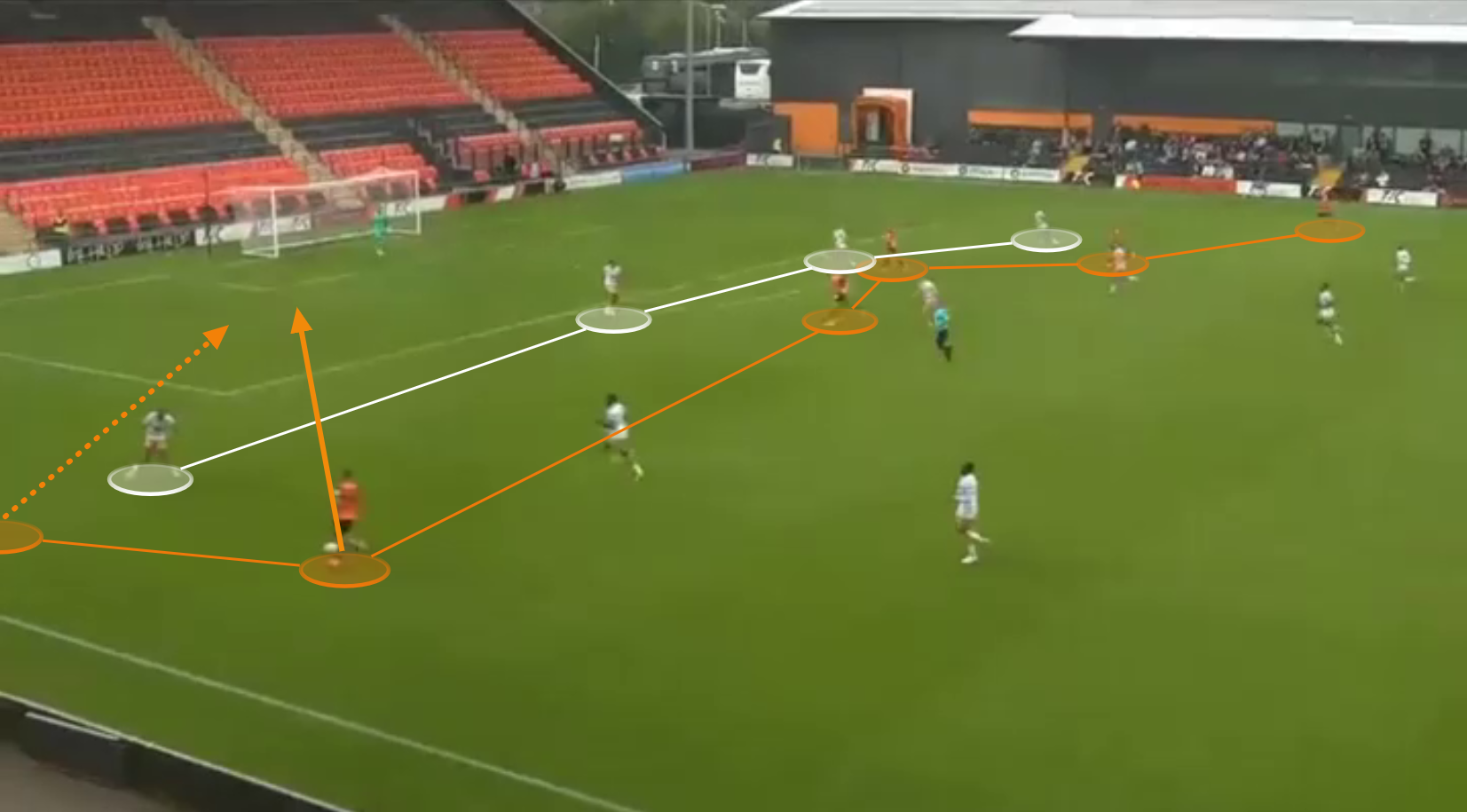 This may seem like the high line of Brennan’s should be abandoned. However, this isn’t the case. Although it can be exposed, the high line enables Barnet to push high up the pitch, reduce the distances between the lines, condense the pitch, and press with aggression. If they attempted to press high without implementing a high defensive line, there would be huge gaps between the lines which would be able to be exploited instead.