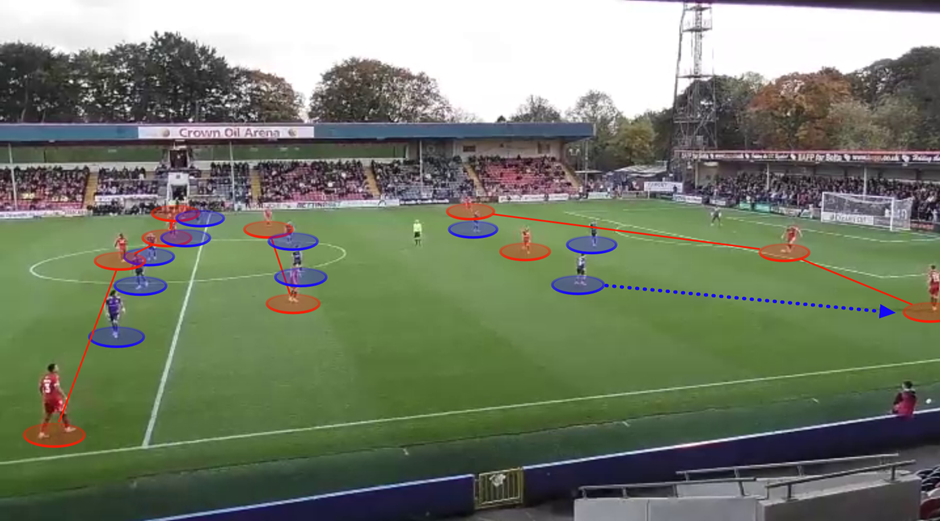 Although Rochdale had a numerical advantage during their build-up phase (5v4), they moved the ball too slowly to make the most of it, and allowed Southend time to apply pressure.