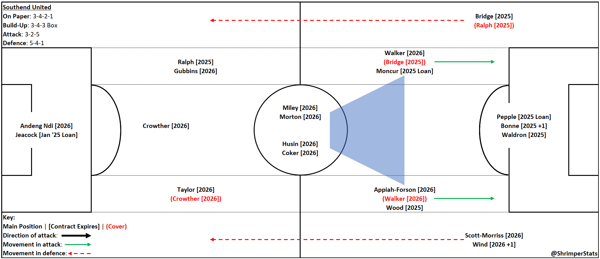 Therefore, there would need to be more specific recruitment to mould Southend’s squad into one that can fit a 4-3-3 or 4-4-2 in the long-term, which takes time – especially with many players under contract until 2026.