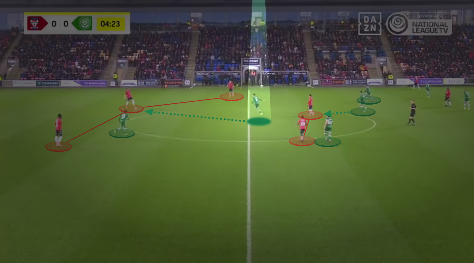 But what about when they’re without the ball? In the high press, Yeovil allow their opponents an average of 12.67 passes per every defensive action they attempt (PPDA). This ranks Yeovil 19th in the National League for this particular metric, and illustrates how their press is, generally speaking, more of a passive one.